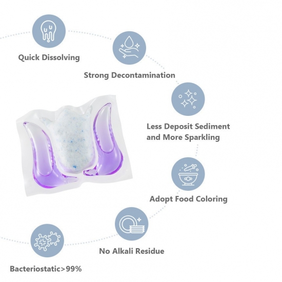 식기세척기 포드 는 울트라 클린으로 식기를 효과적으로 청소할 수 있습니다. 완고한 얼룩 제거, 물 연화, 높은 정균 속도, 재부착 방지 및 식기를 더 반짝거리는 효과 등의 다기능으로. 매우 깨끗한 식기세척기 캡슐은 시장에서 가장 일반적인 식기세척기에 적합합니다.